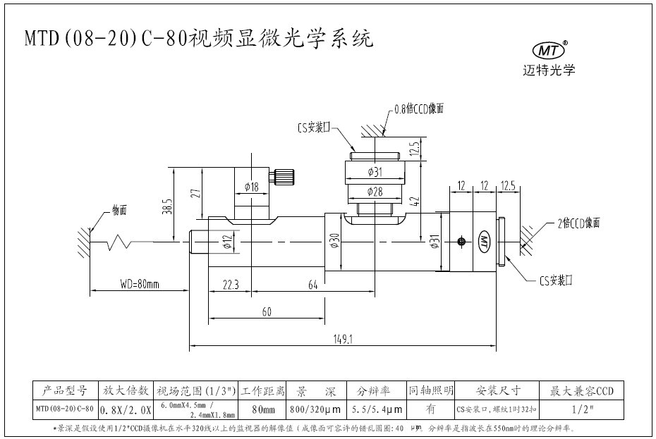 單筒視頻顯微系統
