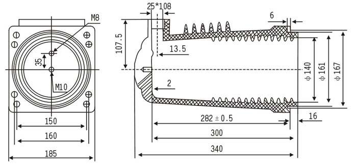 觸頭盒采用環(huán)氧樹脂結(jié)構(gòu),用于各種手車式開關(guān)柜,起絕緣隔離和聯(lián)接過渡作用。 安裝中心距離為250mm,適用額定電壓10KV,電流2500A~3150A。觸頭盒在額定電流下,長期工作下出線端部溫升不超過65℃。
