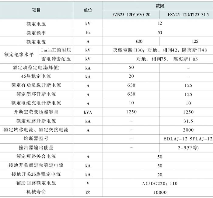 常用產(chǎn)品型號:FZN25-12/630-20、FZN25-12/125-31.5