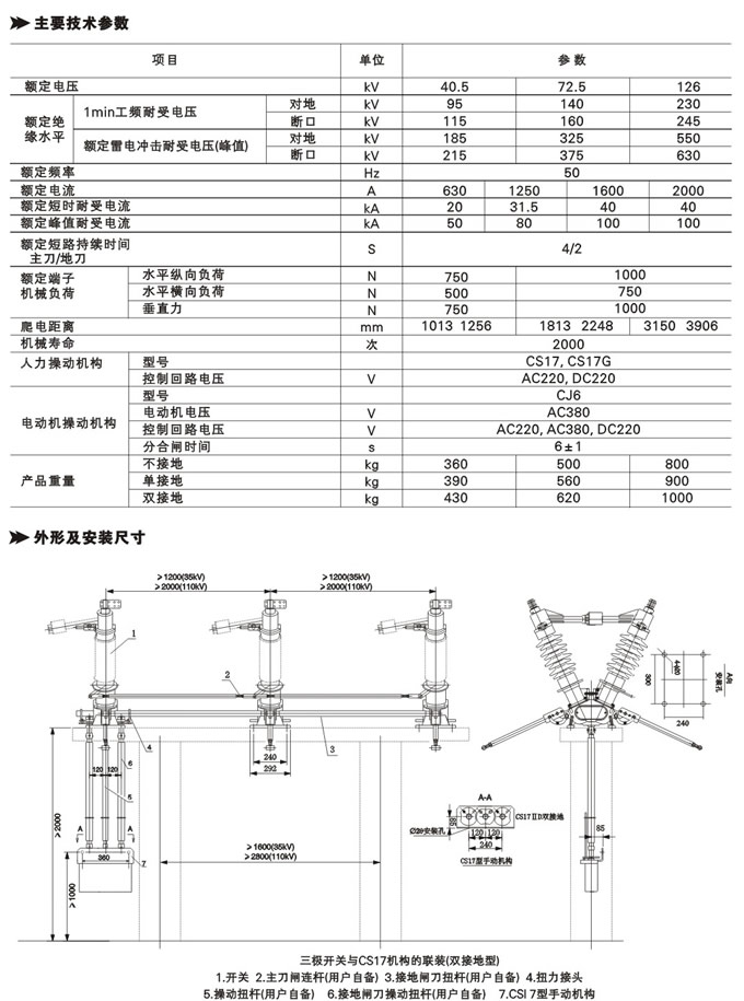 主營產品:GW5-72.5DW/630A、GW5-72.5DW/1250A、GW5-72.5DW/1600A、GW5-72.5DW/2000